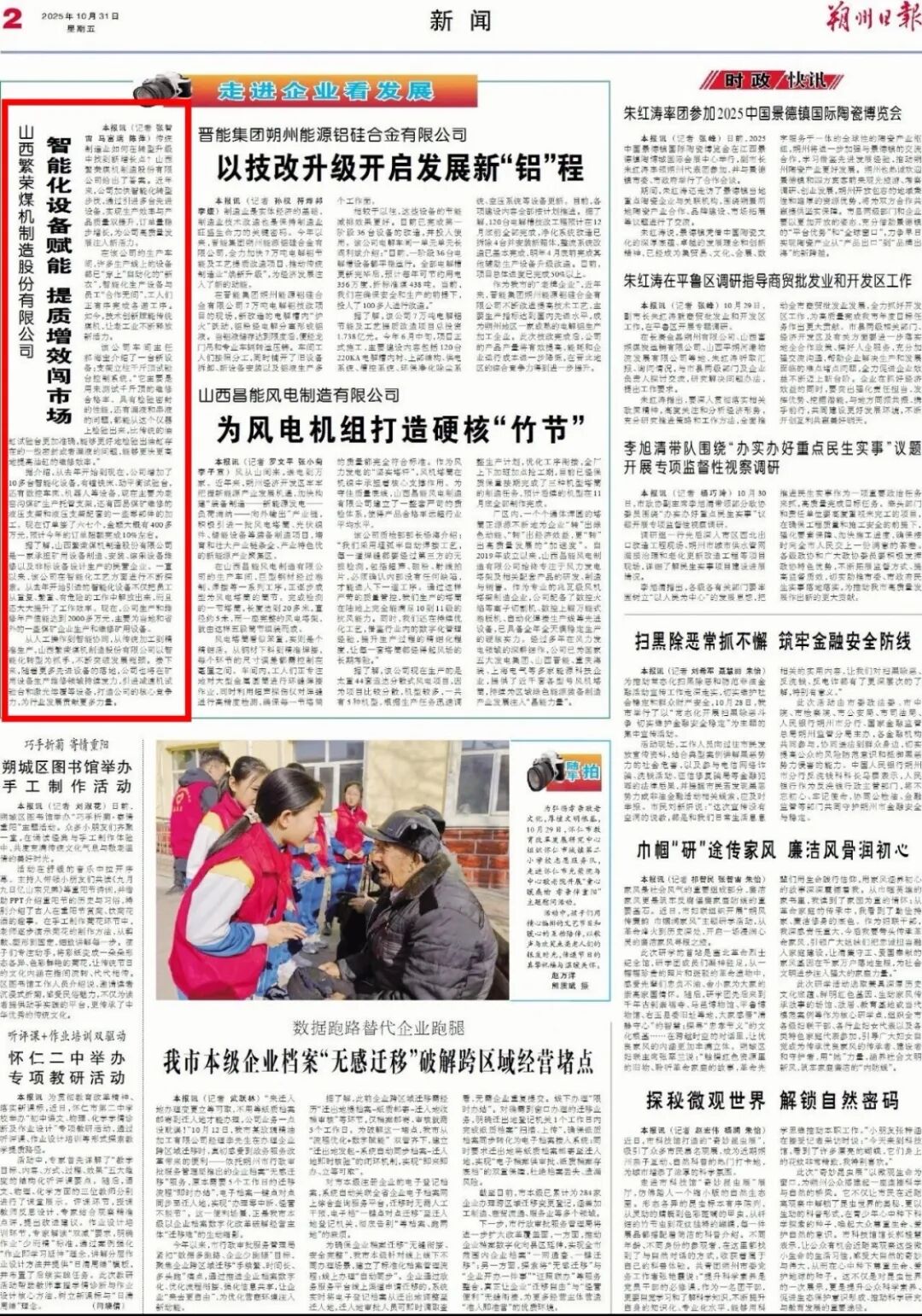 编者按:近年来,位于朔州经济开发区的山西繁荣煤机制造股份有限公司,加快智能化转型步伐,通过引进多台先进设备,实现生产效率与产品质量双提升,订单量稳步增长,为开发区高质量发展注入新活力。10月31日,《朔州日报》对此进行了报道。