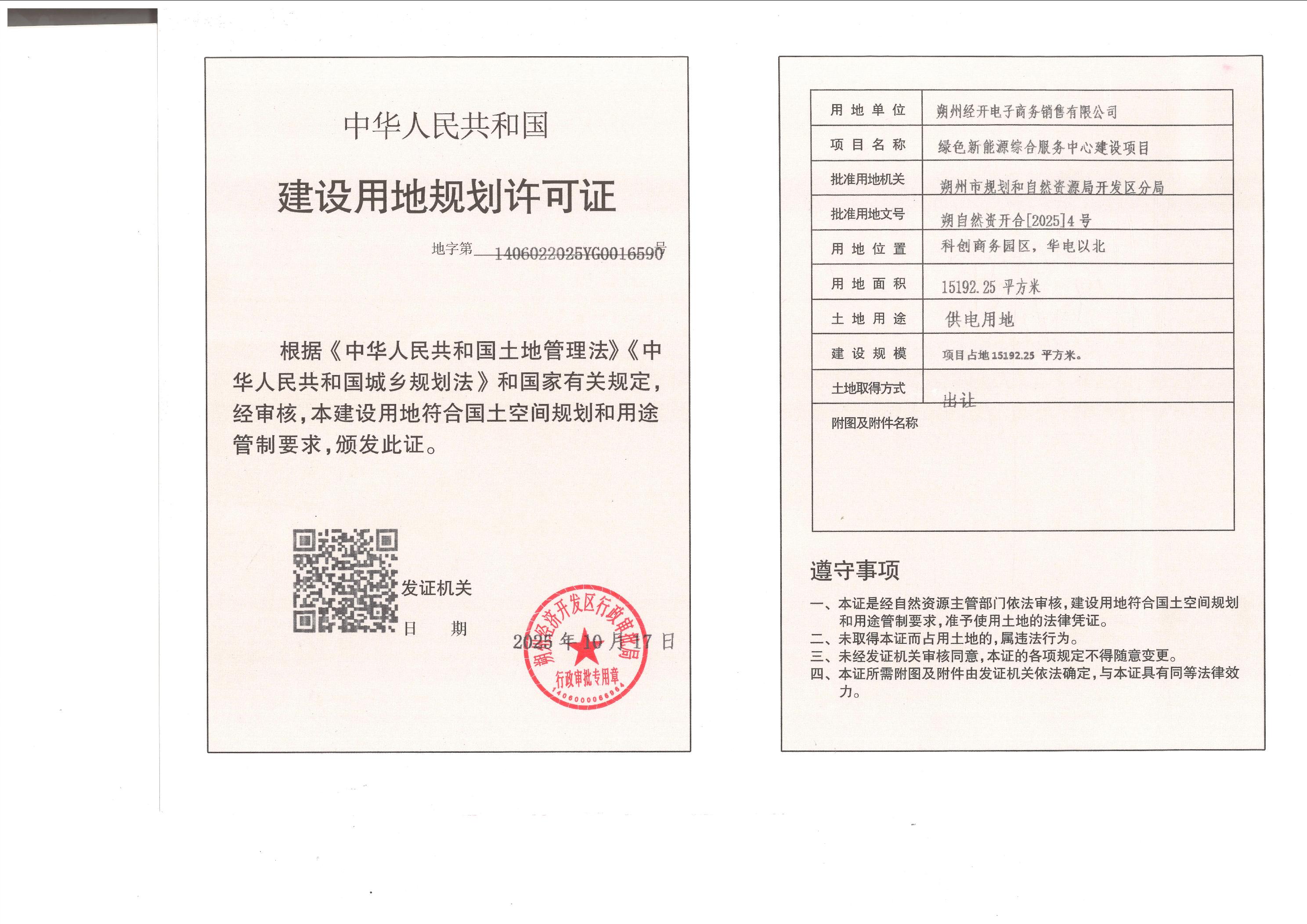 关于对朔州经开电子商务销售有限公司绿色新能源综合服务中心建设项目建设用地规划许可证的公示