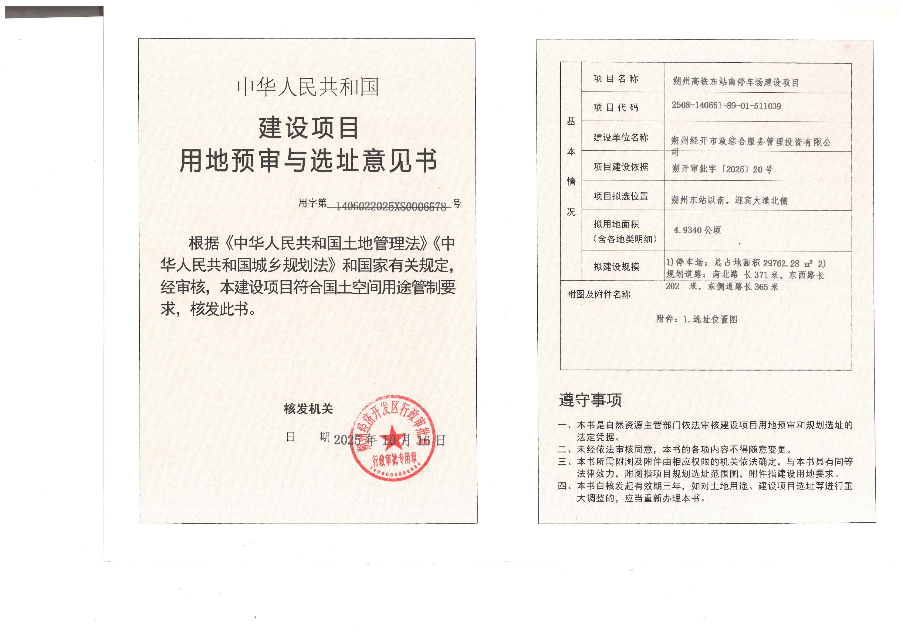 关于对朔州经开市政综合服务管理投资有限公司朔州高铁东站南停车场建设项目选址意见书的公示