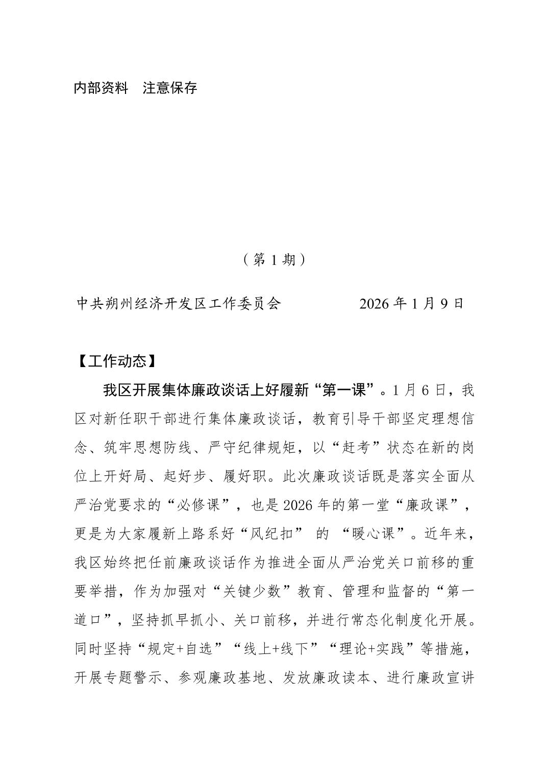 2026年朔州经济开发区政务信息第一期
