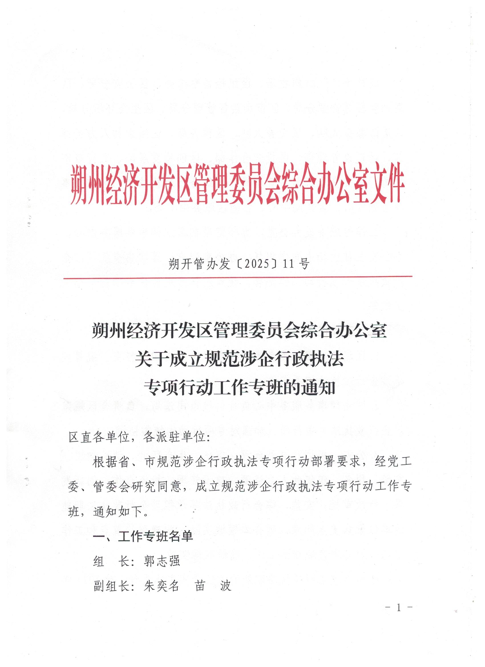 朔州经济开发区管理委员会综合办公室关于成立规范涉企行政执法专项行动工作专班的通知